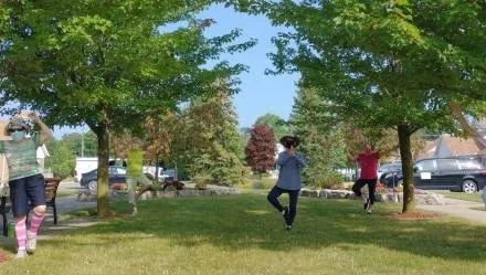 Residents at Luther Village on the Park retirement community enjoyed outdoor yoga this summer, practicing tree poses among the beautiful trees.